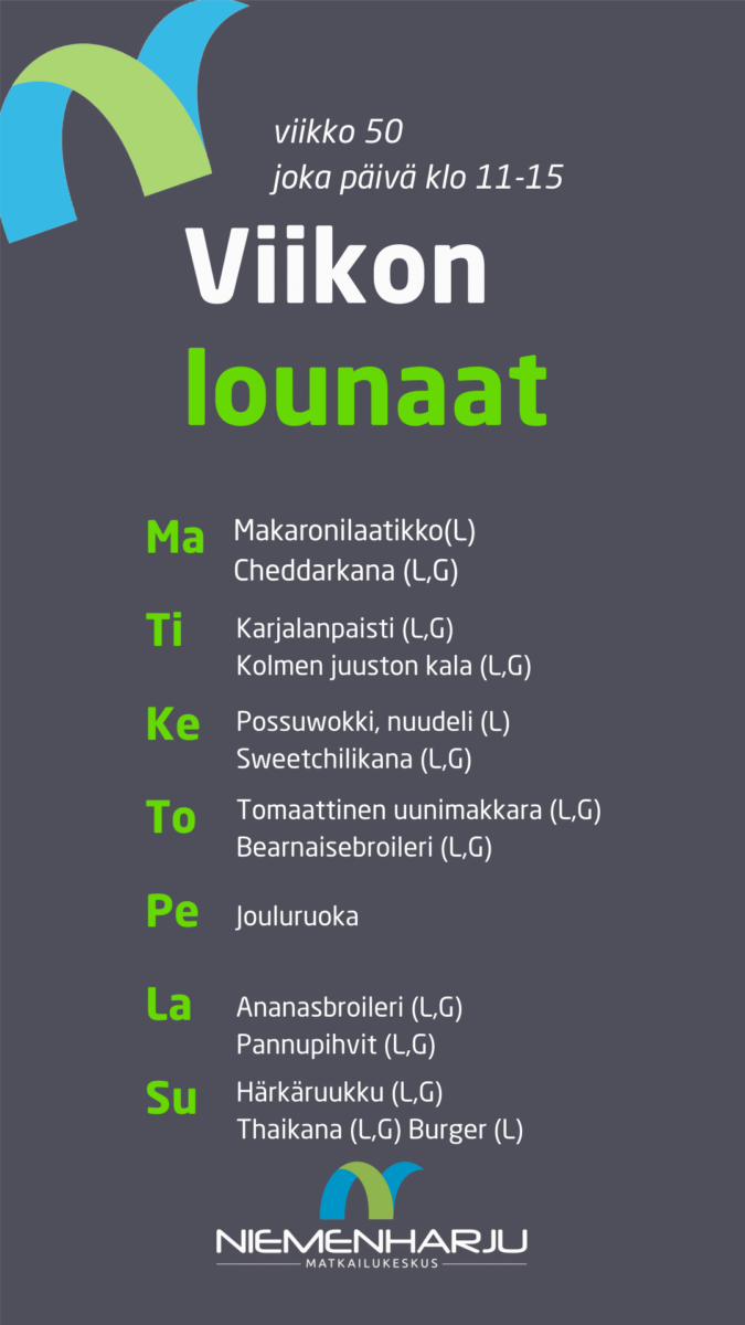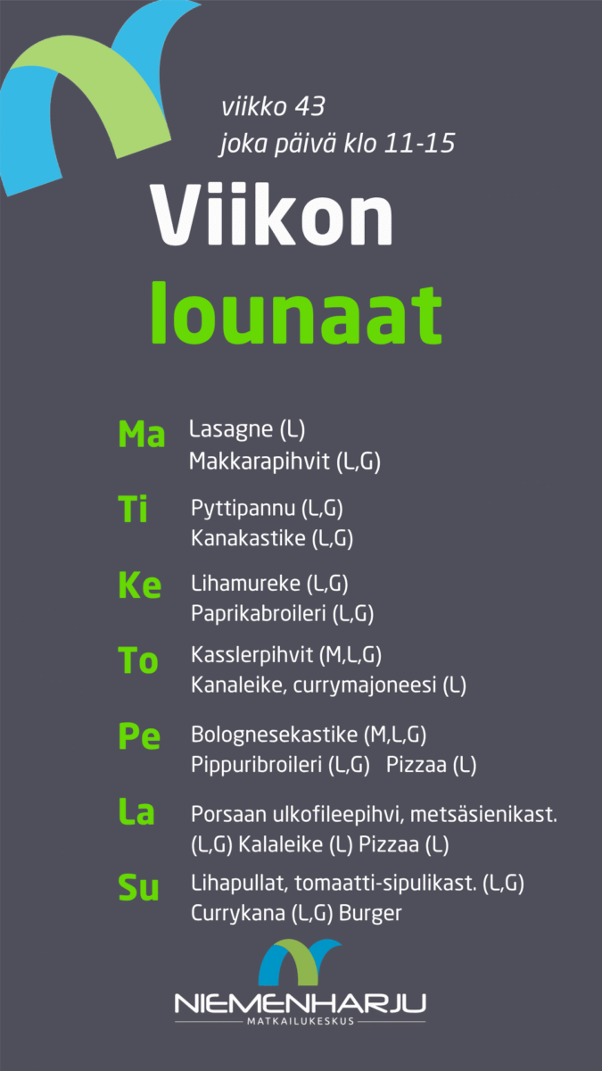 - Monipuolinen ruokavalikoima, seisovassa pöydässä joka päivä klo 10.30-17.00 tarjolla kotiruokaa
