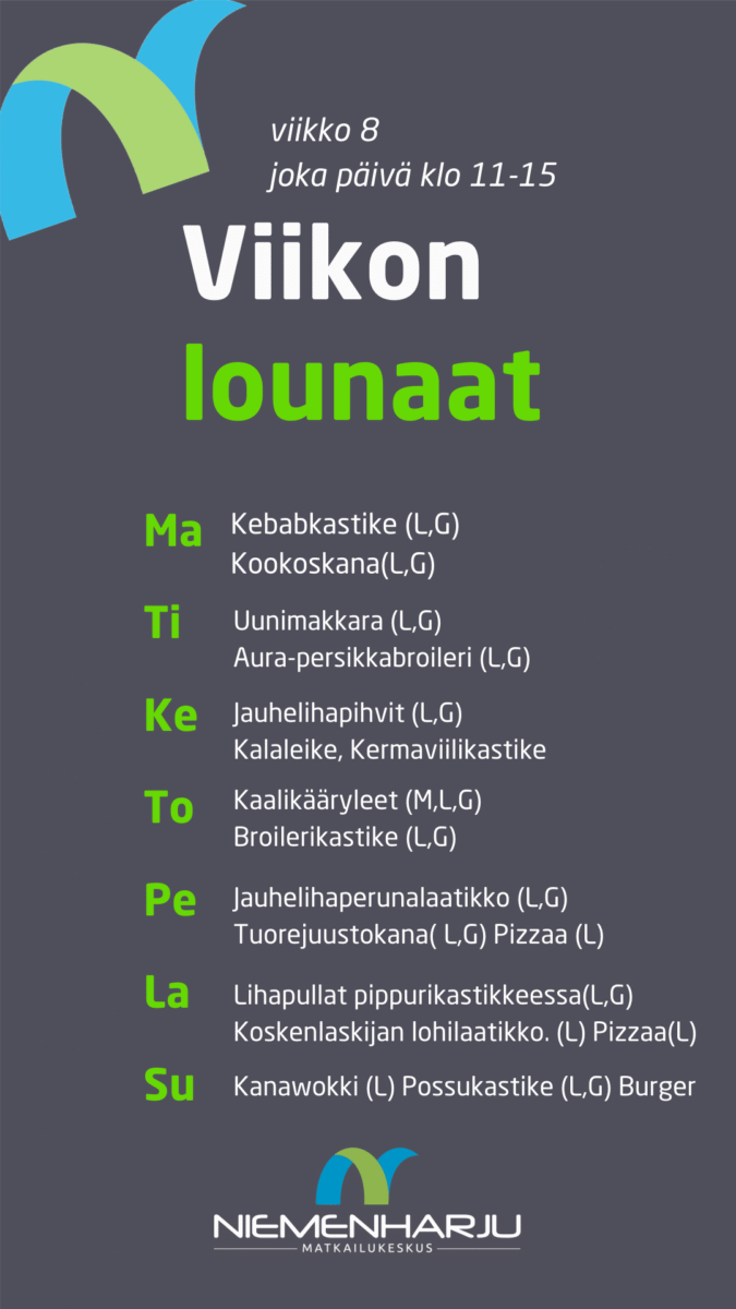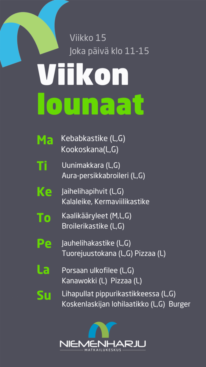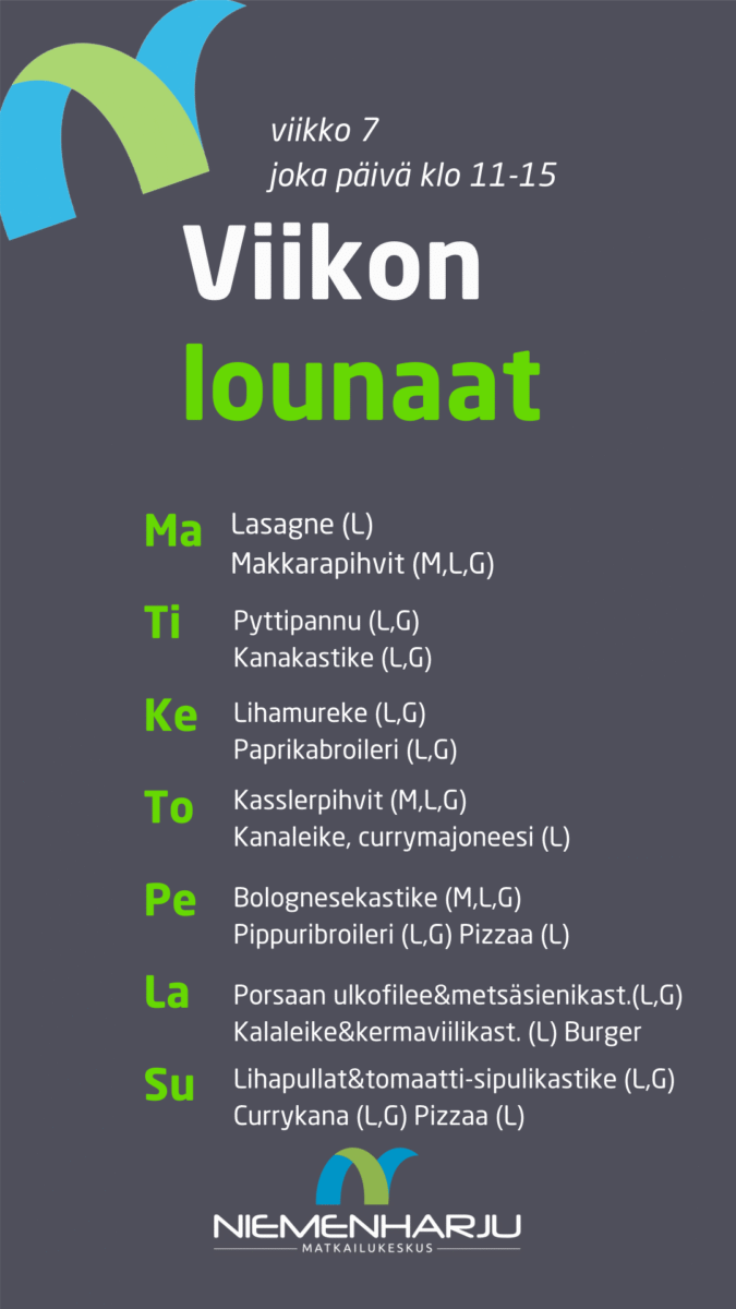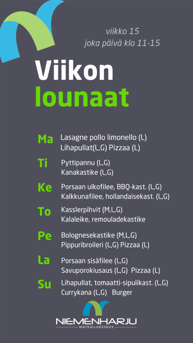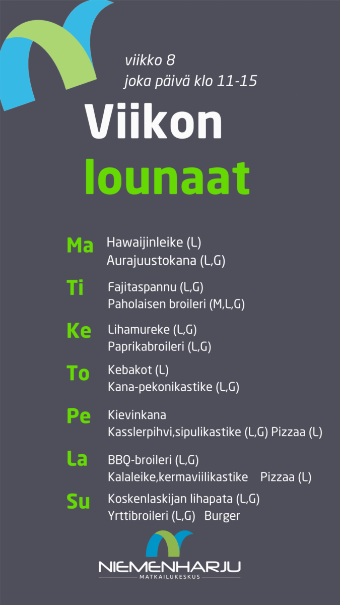 - Monipuolinen ruokavalikoima, seisovassa pöydässä joka päivä klo 10.30-17.00 tarjolla kotiruokaa